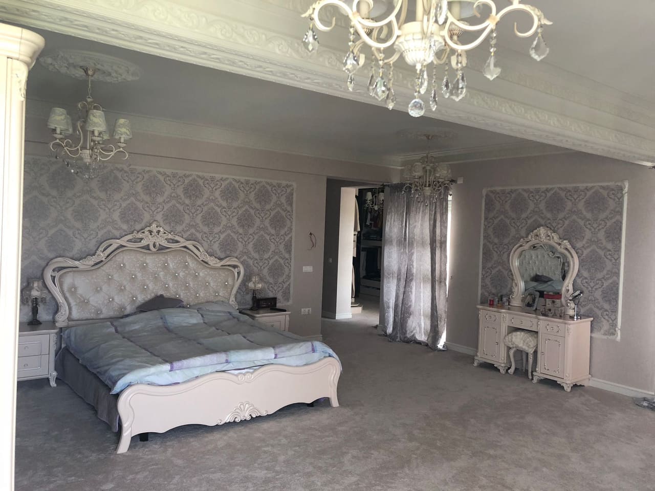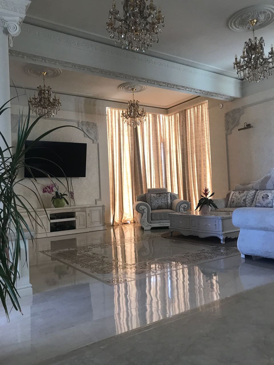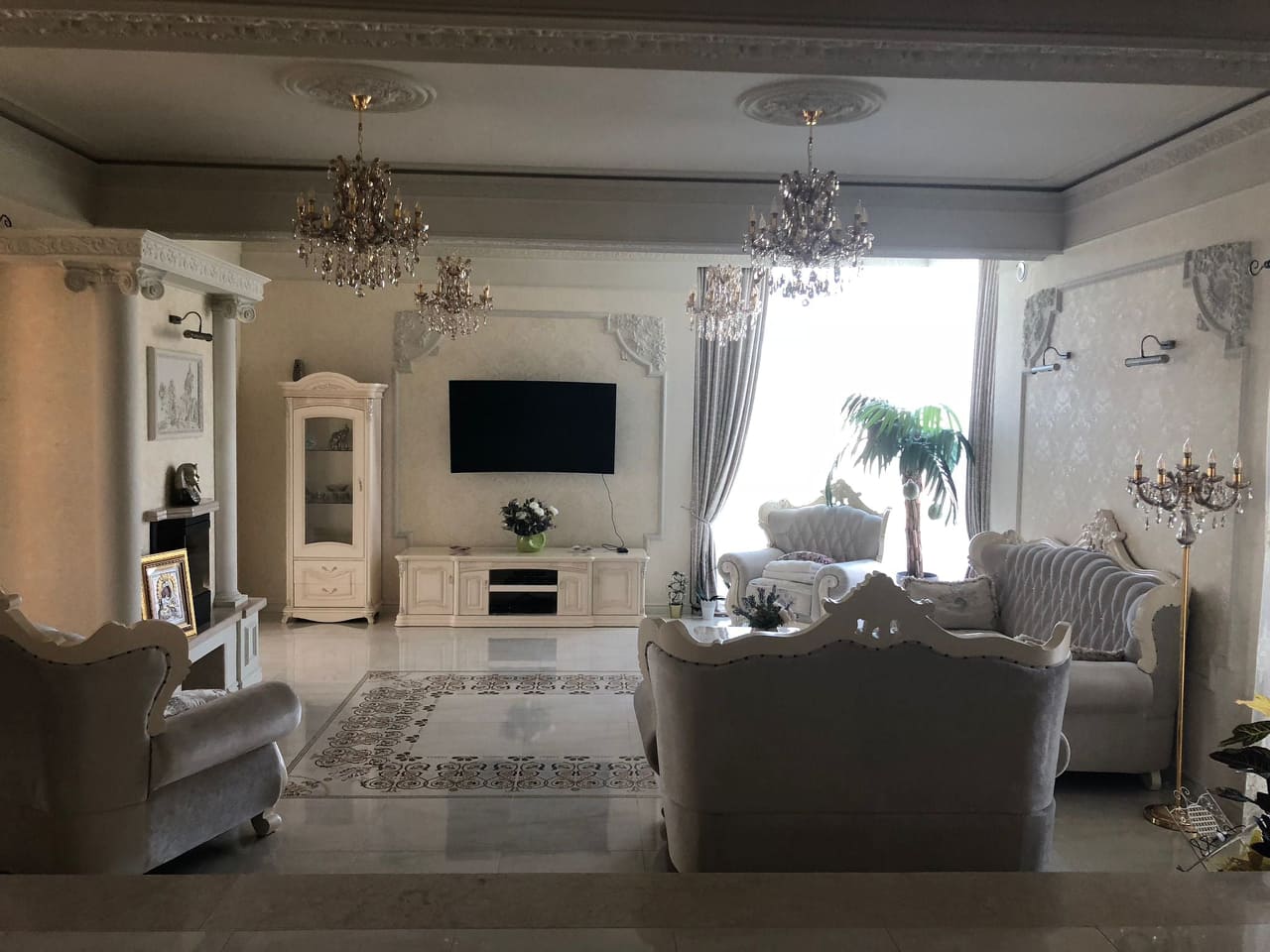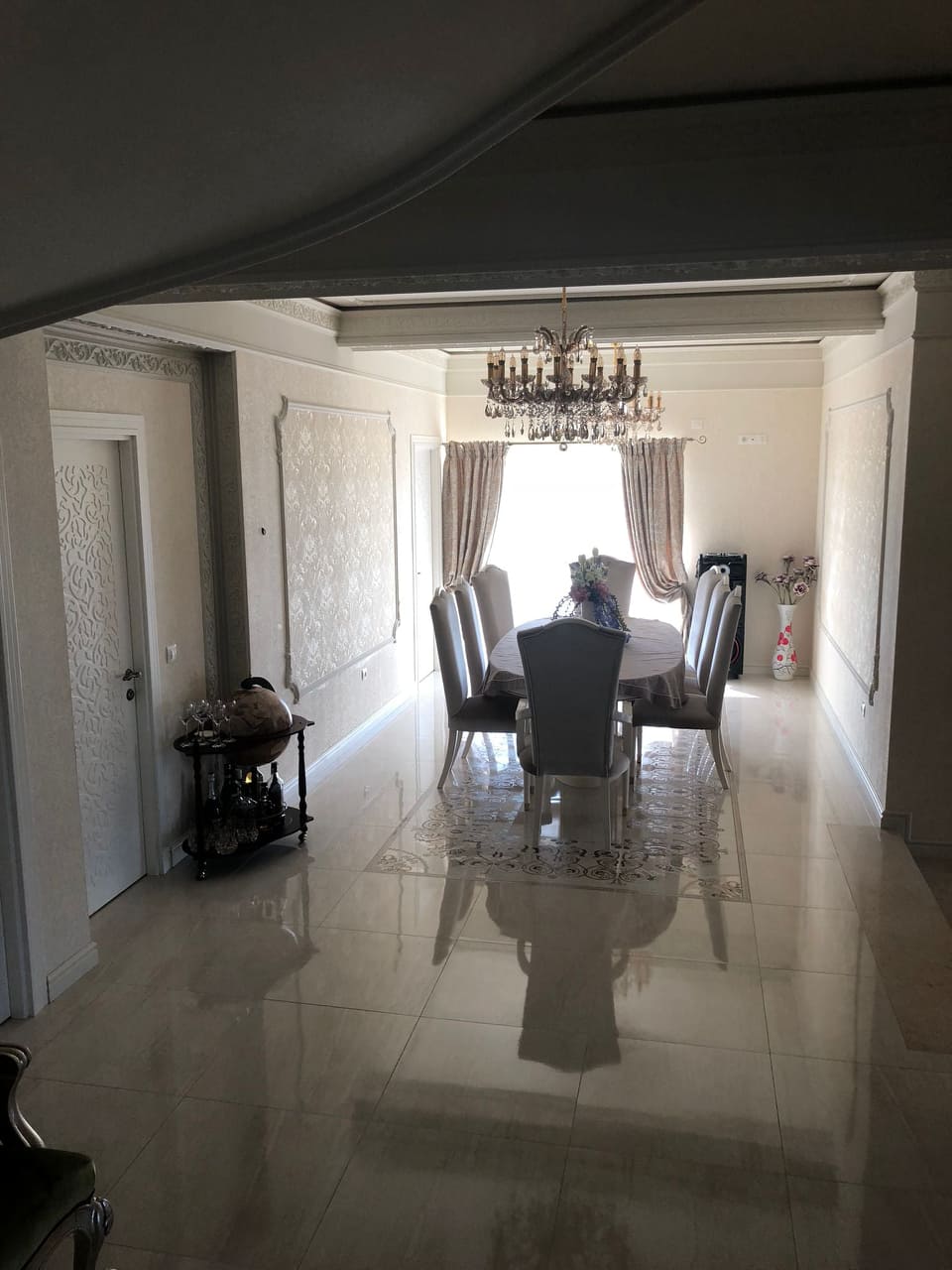◦ Tapet import Italia și profile decorative de înalta calitate. Tavanele sunt cu var special cu cristale ce dau un aer luxos și îmbunătățesc performanță iluminatului