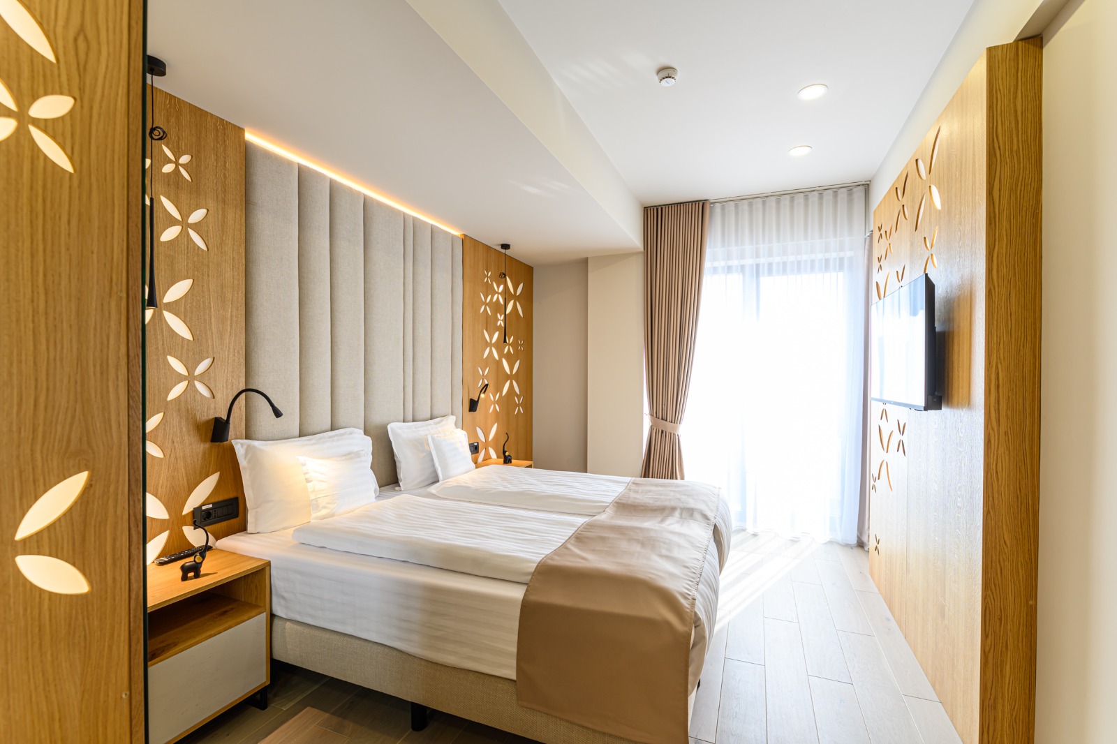 Situat convenabil, chiar în centrul orașului, hotelul dispune de 30 de camere duble (din care 3 perechi de interconectate) și un apartament Junior suite. Restaurantul cu note elegante și motive tradiționale inserate în mobilier, în nuanțe de crem, dispune de 80 de locuri la mese. Meniul atent ales de Chef Bianca Scurtu, îmbină preparate locale cu selecțiile din meniul internațional.