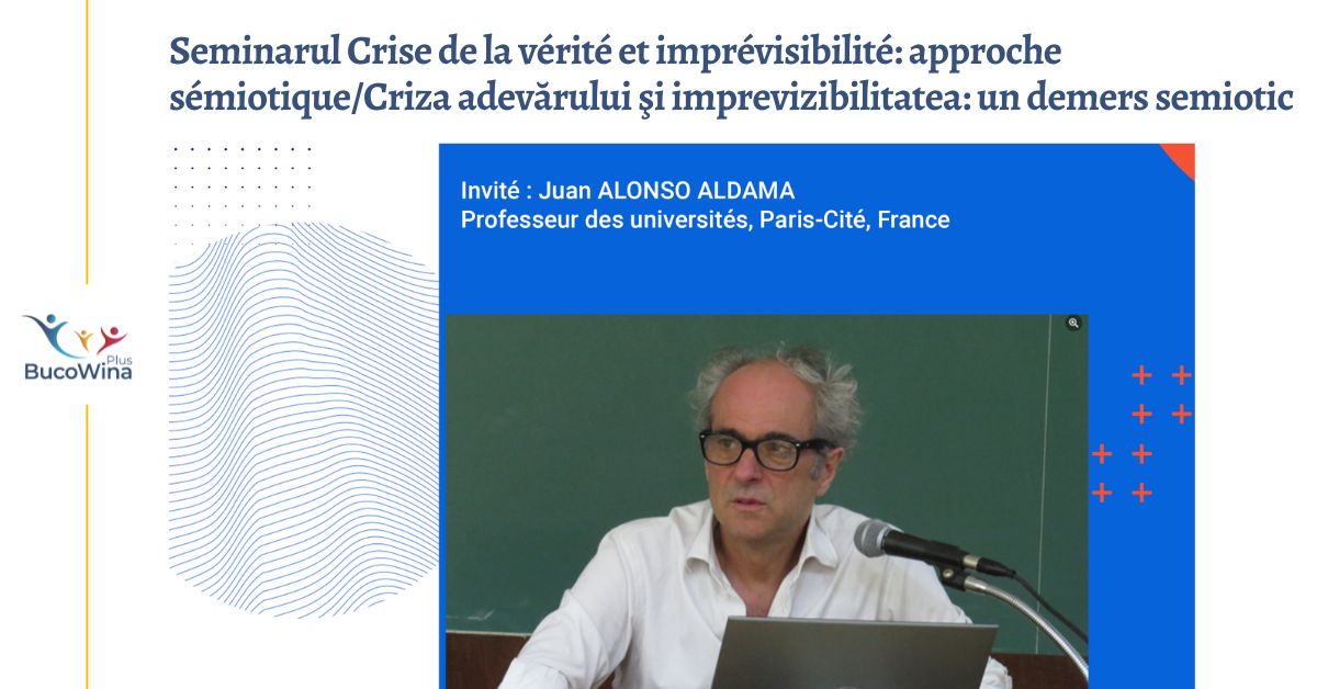 Marţi, 11 iunie 2024, ora 17.00, Alianța Franceză, în parteneriat cu Centrul de Cercetare Analiza Discursului (CADISS) al Universităţii « Ştefan cel Mare » din Suceava, organizează seminarul Crise de la vérité et imprévisibilité : approche sémiotique/Criza adevărului şi imprevizibilitatea: un demers semiotic,