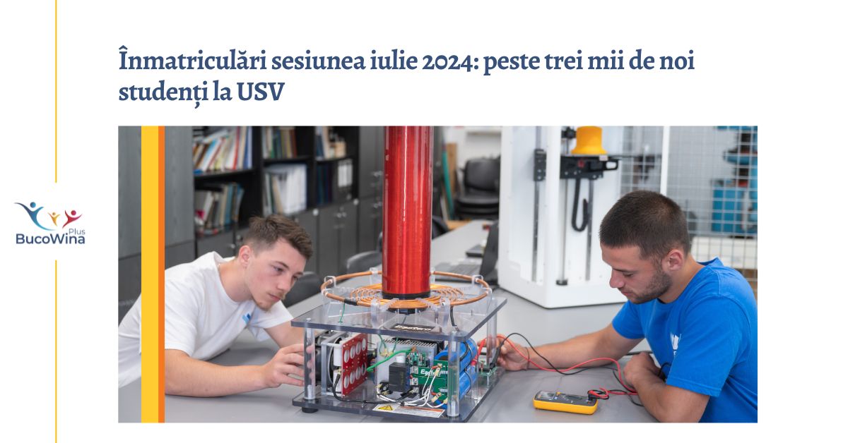 Prima sesiune de admitere organizată de Universitatea „Ștefan cel Mare” din Suceavas-a încheiat marți, 30 iulie, odată cu afișarea rezultatelor finale. Programele oferite în această rundă de admitere au atras peste 3450 de noi studenți la studiile de licență (învățământ