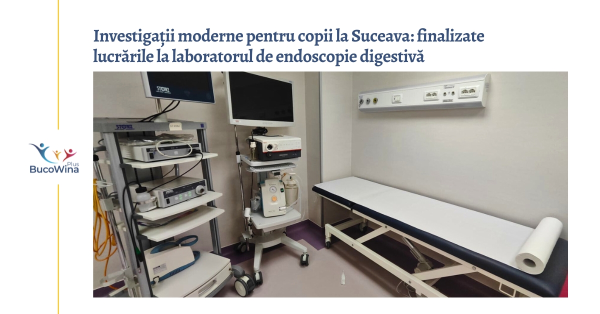 Managerul Spitalului Clinic Județean de Urgență „Sf. Ioan cel Nou” Suceava, dr. Ionuț Mircea Jurchiș Irimie, anunță finalizarea lucrărilor de amenajare a noului laborator de endoscopie digestivă superioară din cadrul Ambulatoriului de Pediatrie. Vizam optimizarea diagnosticului unor afectiuni precum esofagita, gastroduodenita,