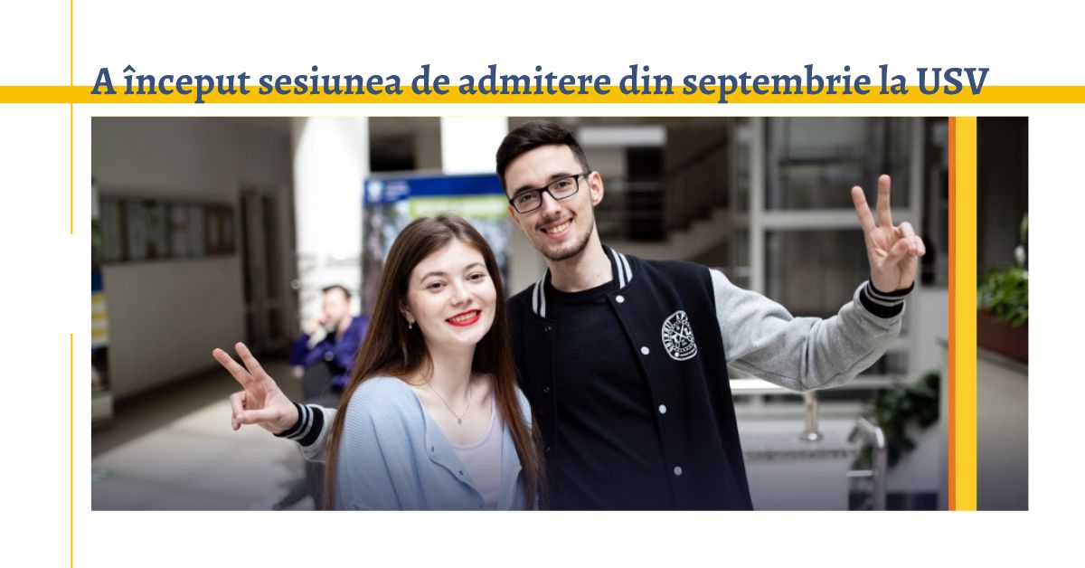 Sesiunea septembrie a concursului de Admitere USV 2022 debutează pe 5 septembrie, și se va desfășura până pe 12 septembrie (fără zilele de sâmbătă și duminică) pentru specializările unde nu există probe, respectiv 9 septembrie, pentru specializările unde există probe.Oferta