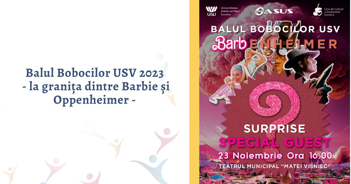 Asociația Studenților din Universitatea Suceava (ASUS), alături de Universitatea „Ștefan cel Mare” din Suceava și de Casa de Cultură a Studenților, organizează Balul Bobocilor USV, joi, 23 noiembrie a.c., începând cu ora 16:00, la Teatrul Municipal „Matei Vișniec”. Ca de fiecare