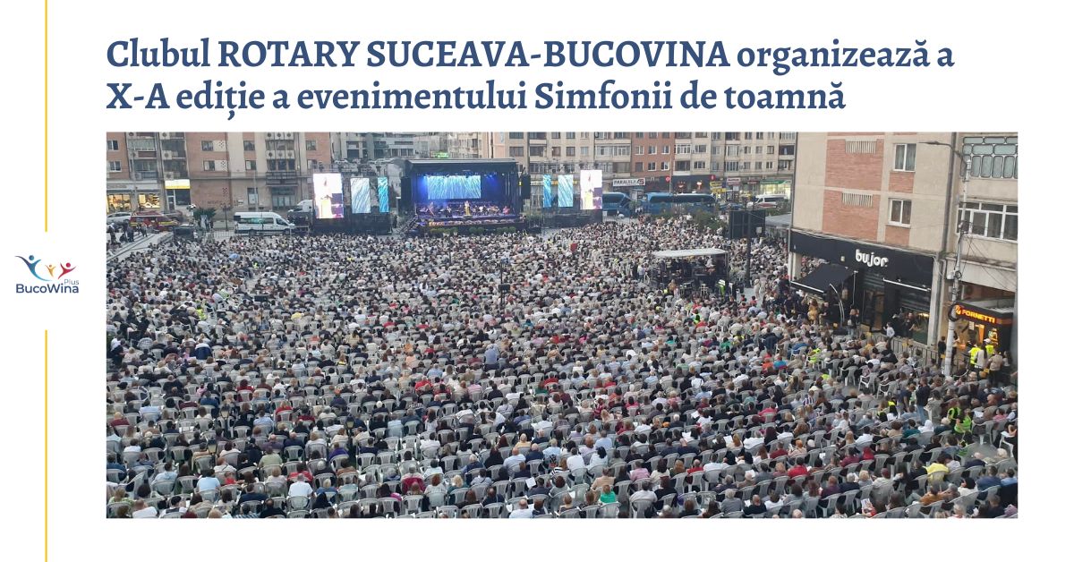 Clubul Rotary Suceava Bucovina a organizat joi, 8 Septembrie 2022, a IX-a ediție a proiectului SIMFONII DE TOAMNA. Sucevenii s-au bucurat de o seară de toamna în compania artiștilor de la FILARMONICA NAȚIONALĂ ”Serghei LUNCHEVICI” din CHIȘINĂU - dirijor Mihail