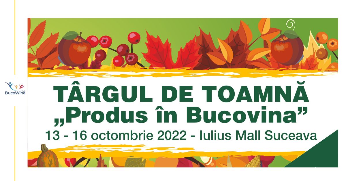 Ediția din acest an a târgului de toamnă „Produs în Bucovina” va avea loc în perioada 13-16 octombrie, în parcarea Iulius Mall Suceava. Programul de vizitare este, pe 13 octombrie, între orele 12.00-20.00, iar în următoarele zile între 9.00-20.00. Județul Cluj,