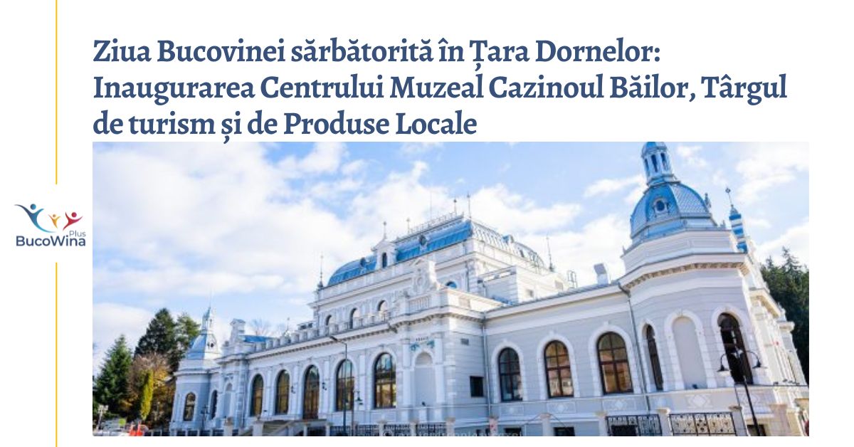 Într-o atmosferă de sărbătoare și tradiție, Ziua Bucovinei va fi sărbătorită în destinația de ecoturism Țara Dornelor, marcând inaugurarea Centrului Muzeal „Cazinoul Băilor” după 35 de ani de la dezafectare. Această transformare marchează un moment deosebit, coincide cu împlinirea a