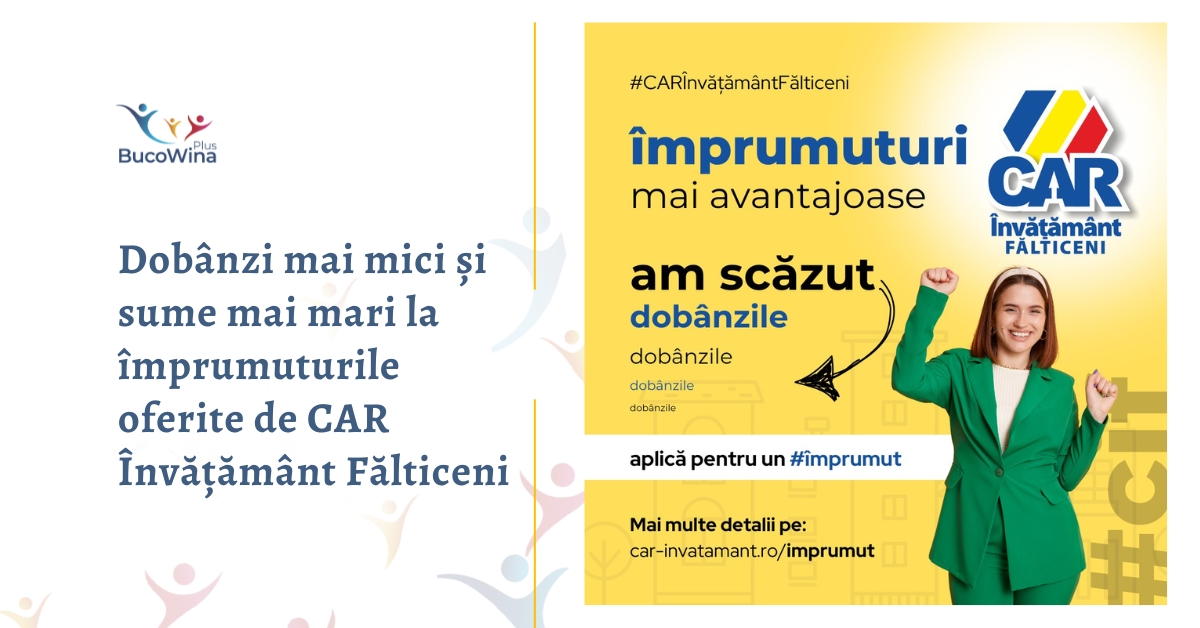 Sucevenii care au nevoie de un sprijin financiar au acum parte de condiții mai bune ca niciodată la CAR Învățământ Fălticeni. Instituția a anunțat scăderea dobânzilor la împrumuturi, creșterea sumelor disponibile și introducerea unor oferte speciale pentru membrii noi și
