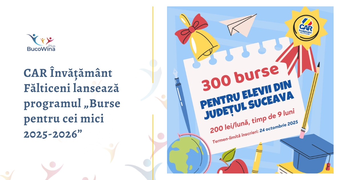 CAR Învățământ Fălticeni sprijină excelența școlară prin programul „Burse pentru cei mici 2025–2026”