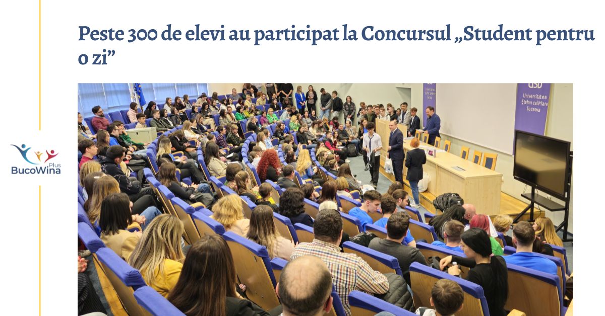Sâmbătă, 20 aprilie a.c., Universitatea „Ștefan cel Mare” din Suceava (USV) a organizat, în parteneriat cu Inspectoratul Școlar Județean Suceava, cea de-a XIII-a ediție a Concursului interjudețean pentru liceeni „Student pentru o zi”. Această etapă, destinată claselor a XII-a, a