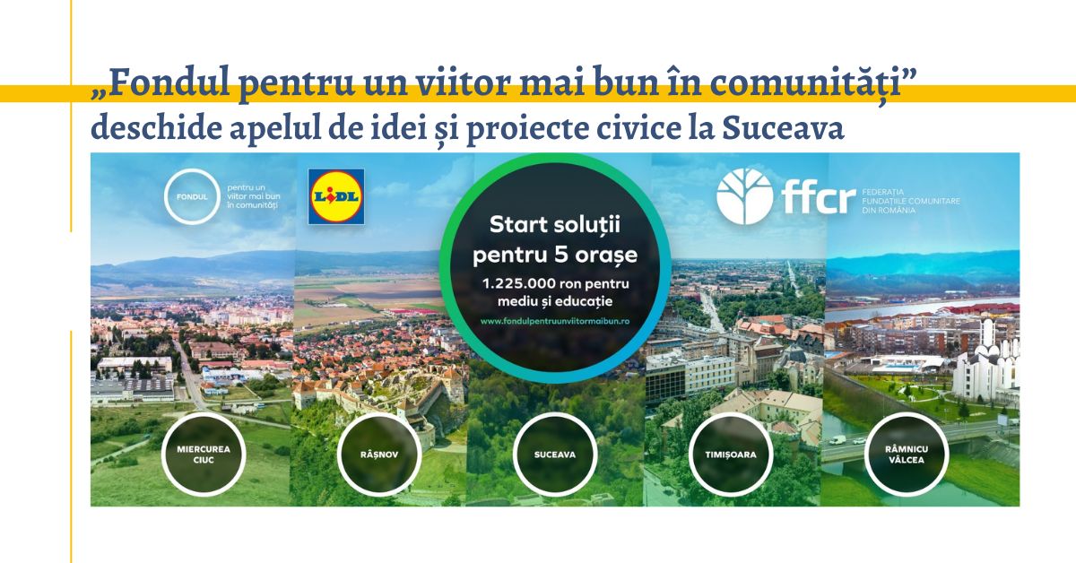 Federația Fundațiile Comunitare din România și Lidl România dau startul la programul național de finanțare „Fondul pentru un viitor mai bun în comunități” în 5 noi orașe din țară, printre care și Suceava. Aflat la ediția a IV-a, programul național