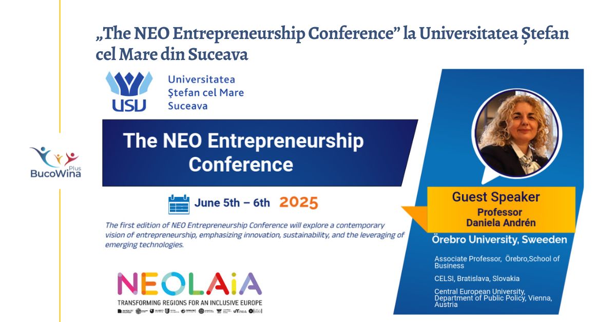 În perioada 3–7 iunie 2025, Universitatea Ștefan cel Mare din Suceava (USV) găzduiește prima ediție a conferinței internaționale “The NEO Entrepreneurship Conference”, un eveniment de anvergură organizat în parteneriat cu prestigioase universități europene membre ale consorțiului NEOLAIA – Transforming Regions
