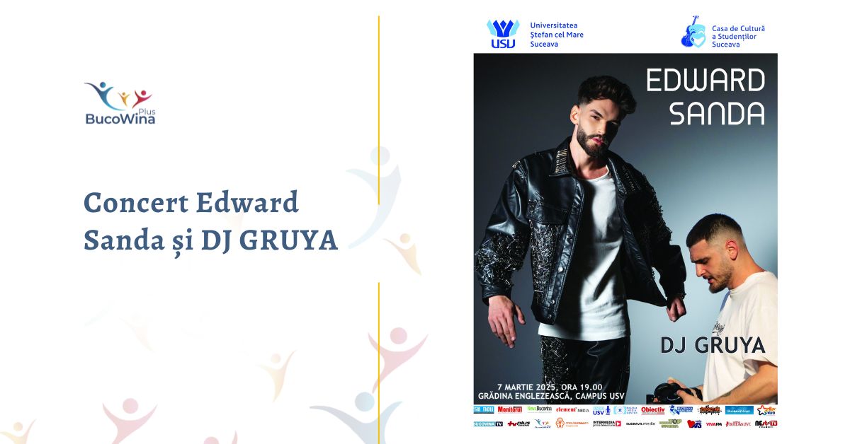 Pentru a celebra Ziua USV, Casa de Cultură a Studenților din Suceava invită publicul la un concert cu îndrăgitul artist Edward Sanda, care va avea loc vineri, 7 martie a.c., de la ora 19:00, în Grădina Englezească a Universității „Ștefan